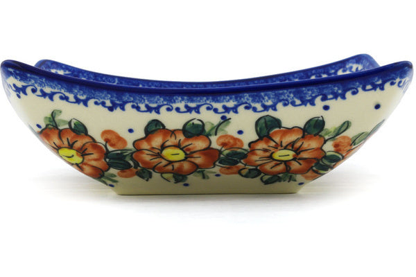 This Polish Pottery 8" Square Bowl - Autumn Pansies is handmade and handpainted by the Ceramika Bona factory in Boleslawiec, Poland.