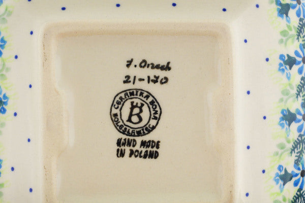 This Polish Pottery 8" Square Bowl - Blue Wreath is handmade and handpainted by the Ceramika Bona factory in Boleslawiec, Poland.
