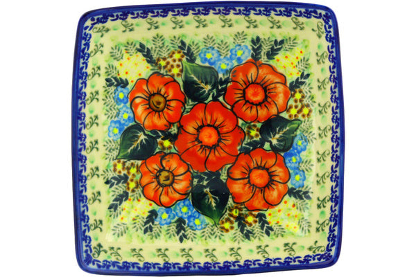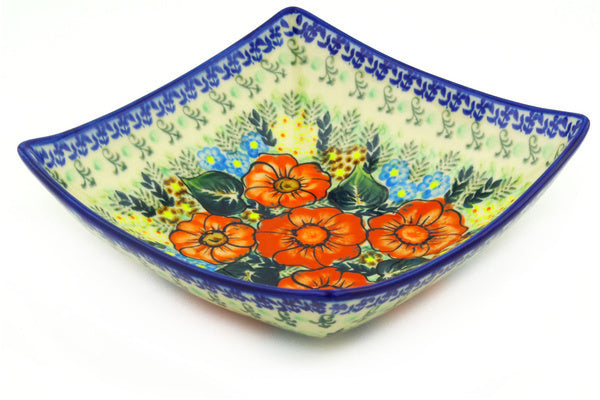 This Polish Pottery 8" Square Bowl - Bold Red Poppies is handmade and handpainted by the Ceramika Bona factory in Boleslawiec, Poland.