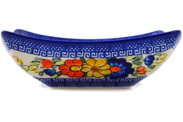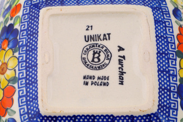 This Polish Pottery 8" Square Bowl - Fall Garden is handmade and handpainted by the Ceramika Bona factory in Boleslawiec, Poland.