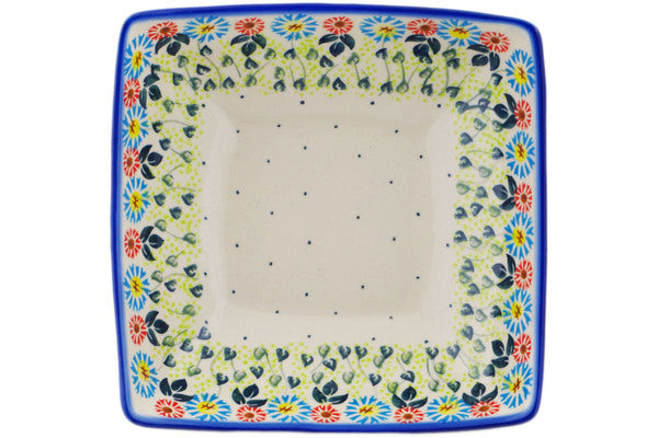 This Polish Pottery 8" Square Bowl - Long-stemmed Beauties is handmade and handpainted by the Ceramika Bona factory in Boleslawiec, Poland.