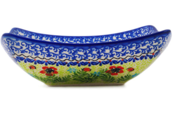 This Polish Pottery 8" Square Bowl - Metamorphosis is handmade and handpainted by the Ceramika Bona factory in Boleslawiec, Poland.