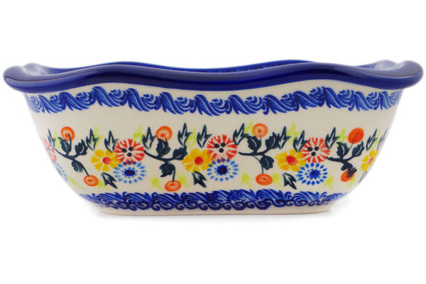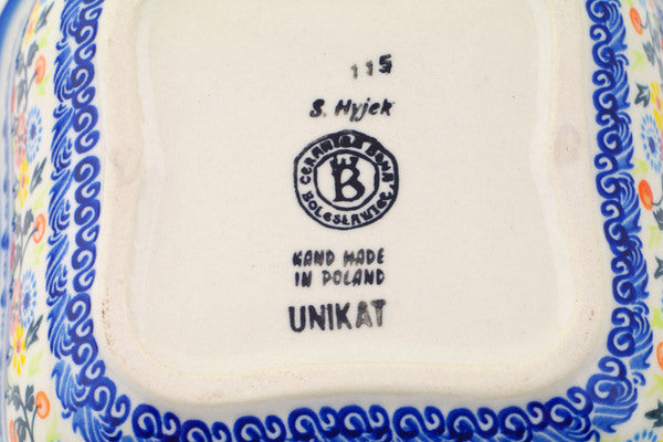 This Polish Pottery 8" Square Bowl - Pastel Spring Wreath is handmade and handpainted by the Ceramika Bona factory in Boleslawiec, Poland.