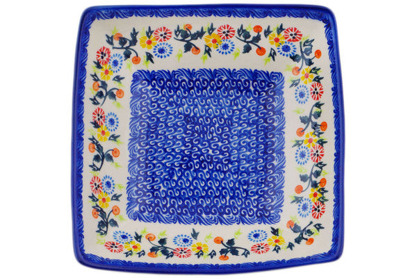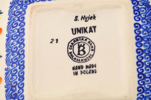 This Polish Pottery 8" Square Bowl - Pastel Spring Wreath is handmade and handpainted by the Ceramika Bona factory in Boleslawiec, Poland.