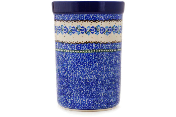 This Polish Pottery 8" Utensil Jar - Blue Bud Sea is handmade and handpainted by the Ceramika Artystyczna factory in Boleslawiec, Poland.