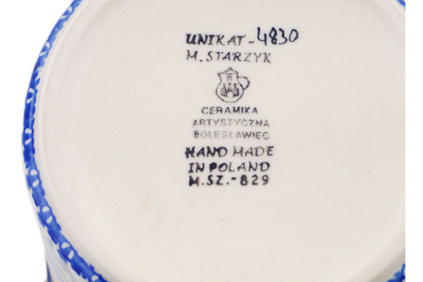 This Polish Pottery 8" Utensil Jar - Waiting Birds is handmade and handpainted by the Ceramika Artystyczna factory in Boleslawiec, Poland.