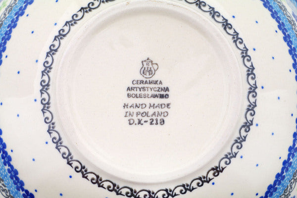 This Polish Pottery 9" Bowl - Blue And Green Flower Dream is handmade and handpainted by the Ceramika Artystyczna factory in Boleslawiec, Poland.