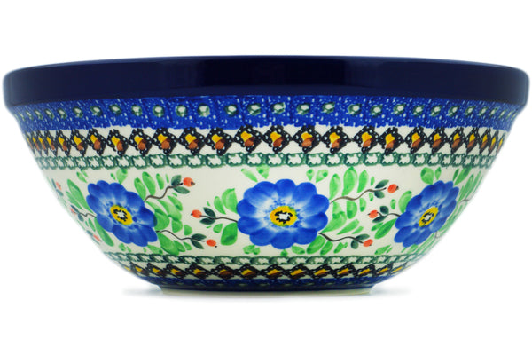This Polish Pottery 9" Bowl - Cobalt Poppies is handmade and handpainted by the Ceramika Artystyczna factory in Boleslawiec, Poland.