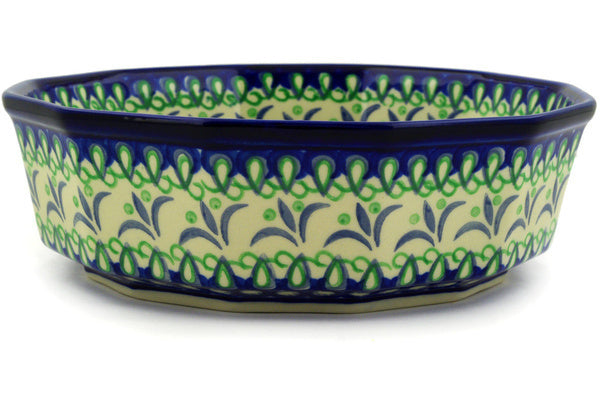 This Polish Pottery 9" Bowl - Fleur De Lis is handmade and handpainted by the Ceramika Artystyczna factory in Boleslawiec, Poland.