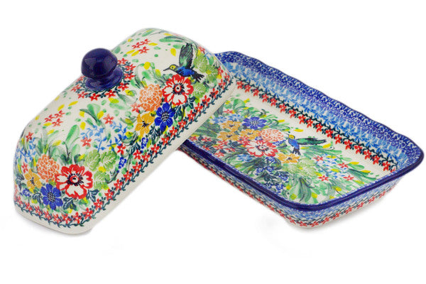9" Butter Dish - Hummingbird Meadow
