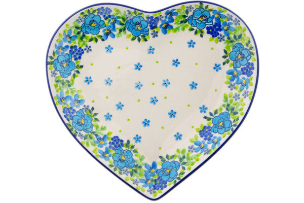 This Polish Pottery 9" Heart Shaped Platter - Blue Kissed Petals is handmade and handpainted by the Ceramika Artystyczna factory in Boleslawiec, Poland.