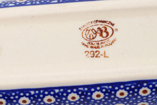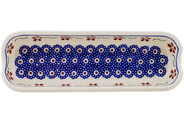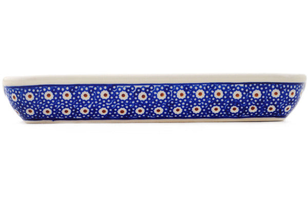 This Polish Pottery 9" Corn Tray - Sweet Red Flower is handmade and handpainted by the Zaklady Ceramiczne factory in Boleslawiec, Poland.
