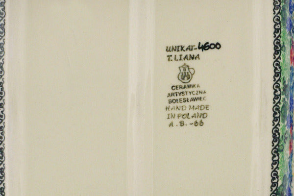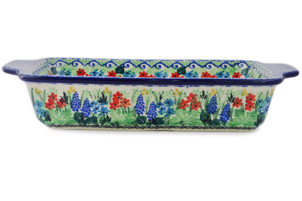 This Polish Pottery 11" Rectangular Baker with Handles - Mariposa is handmade and handpainted by the Ceramika Artystyczna factory in Boleslawiec, Poland.