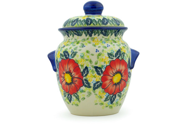 This Polish Pottery 9" Jar with Lid and Handles - Bloom Tales is handmade and handpainted by the Ceramika Nina factory in Boleslawiec, Poland.