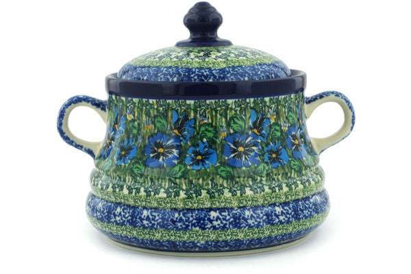 This Polish Pottery 9" Jar with Lid and Handles - Bloomimg Meadow is handmade and handpainted by the Ceramika Artystyczna factory in Boleslawiec, Poland.