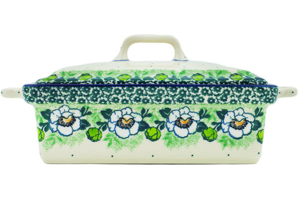 This Polish Pottery 9" Jar with Lid and Handles - Green Flora is handmade and handpainted by the Ceramika Artystyczna factory in Boleslawiec, Poland.