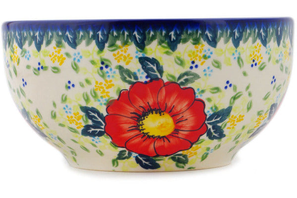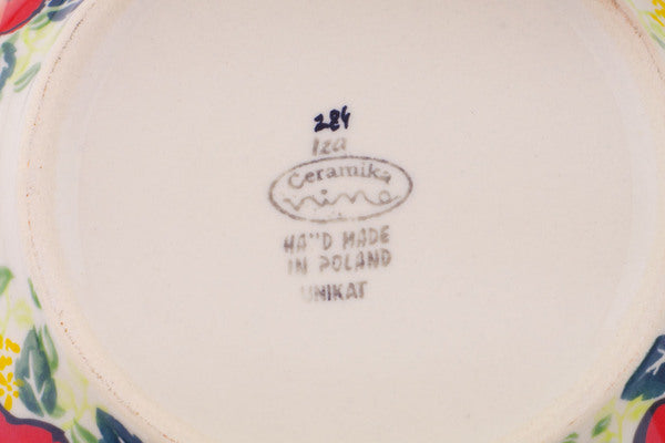 This Polish Pottery 9" Bowl - Bloom Tales is handmade and handpainted by the Ceramika Nina factory in Boleslawiec, Poland.
