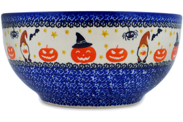 This Polish Pottery 9" Bowl - Harvest Haunt is handmade and handpainted by the Ceramika Nina factory in Boleslawiec, Poland.