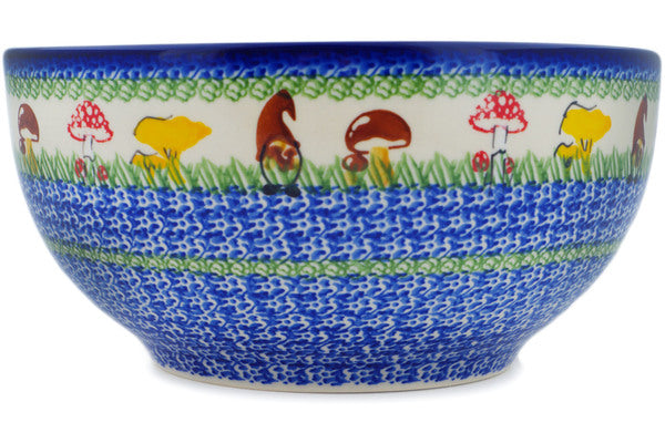This Polish Pottery 9" Bowl - Mushroom Garden is handmade and handpainted by the Ceramika Nina factory in Boleslawiec, Poland.