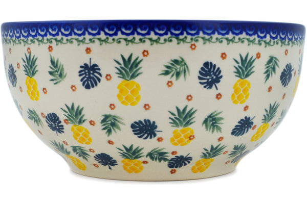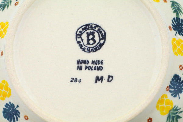 This Polish Pottery 9" Bowl - Pineapple Parade is handmade and handpainted by the Ceramika Bona factory in Boleslawiec, Poland.