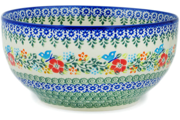 This Polish Pottery 9" Bowl - Ring Of Meadow Flowers is handmade and handpainted by the Ceramika Bona factory in Boleslawiec, Poland.