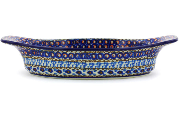 This Polish Pottery 9" Oval Baker with Handles - Cobalt Poppies is handmade and handpainted by the Ceramika Artystyczna factory in Boleslawiec, Poland.