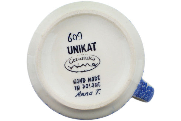 This Polish Pottery 9 oz Pitcher - Maroon Blossoms is handmade and handpainted by the Ceramika Nina factory in Boleslawiec, Poland.