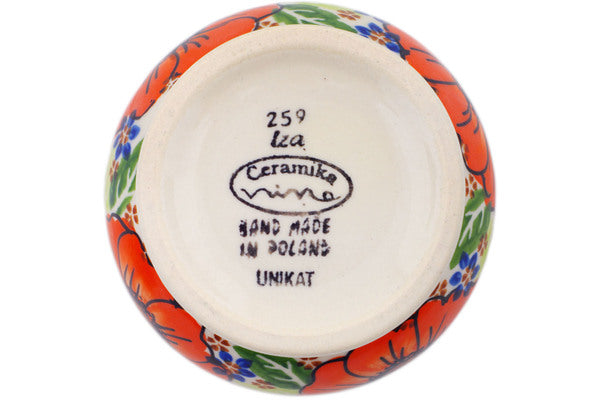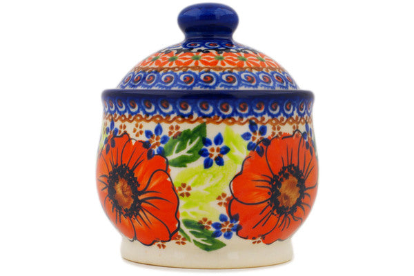 This Polish Pottery 9 oz Sugar Bowl - Orange Zinnia is handmade and handpainted by the Ceramika Nina factory in Boleslawiec, Poland.