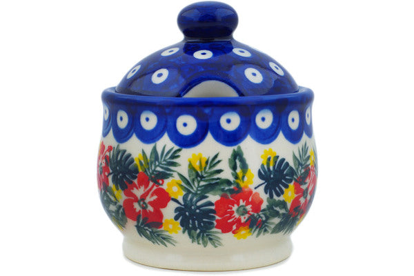 This Polish Pottery 9 oz Sugar Bowl - Tropical Peacock is handmade and handpainted by the Ceramika Bona factory in Boleslawiec, Poland.