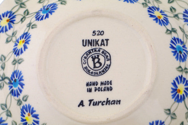 This Polish Pottery 9" Pasta Bowl - Blue Thistle Beauty is handmade and handpainted by the Ceramika Bona factory in Boleslawiec, Poland.