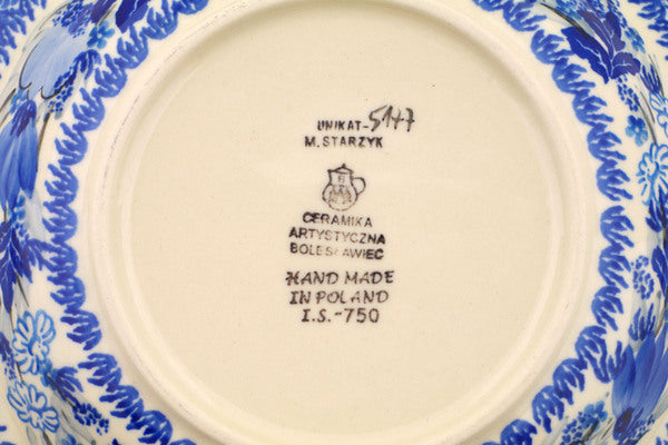 This Polish Pottery 9" Pasta Bowl - Blue Wildflower Patch is handmade and handpainted by the Ceramika Artystyczna factory in Boleslawiec, Poland.