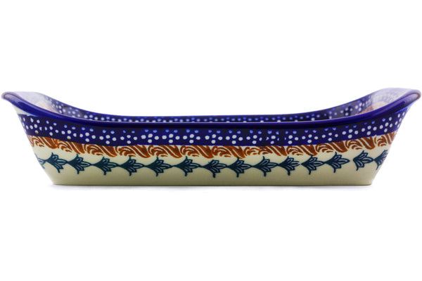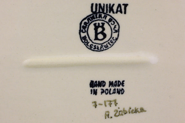 This Polish Pottery 9" Platter with Handles - Blue Cornflower is handmade and handpainted by the Ceramika Bona factory in Boleslawiec, Poland.