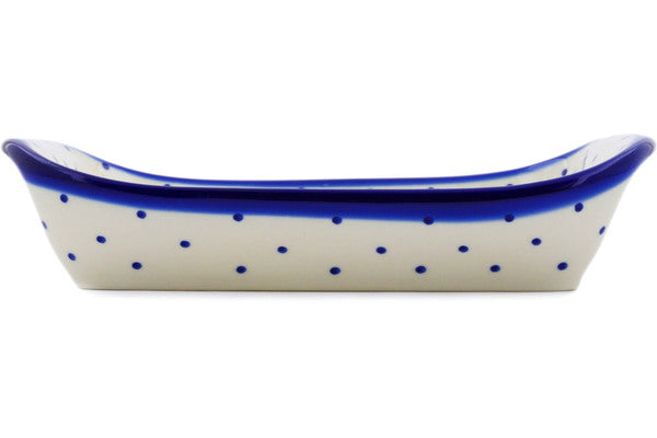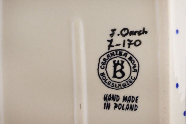 This Polish Pottery 9" Platter with Handles - Blue Wreath is handmade and handpainted by the Ceramika Bona factory in Boleslawiec, Poland.