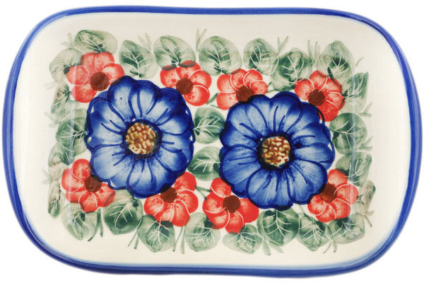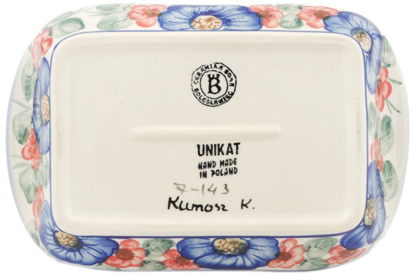 This Polish Pottery 9" Platter with Handles - Flowers In Bloom is handmade and handpainted by the Ceramika Bona factory in Boleslawiec, Poland.