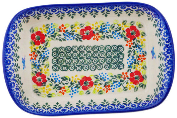 This Polish Pottery 9" Platter with Handles - Ring Of Meadow Flowers is handmade and handpainted by the Ceramika Bona factory in Boleslawiec, Poland.