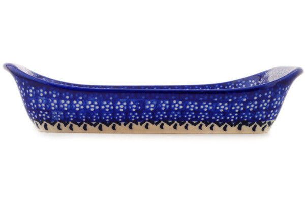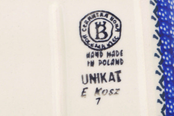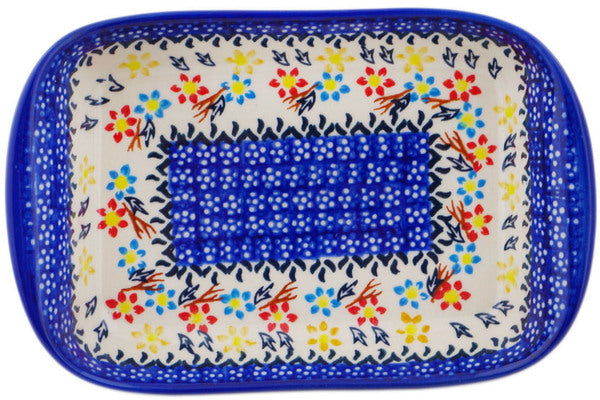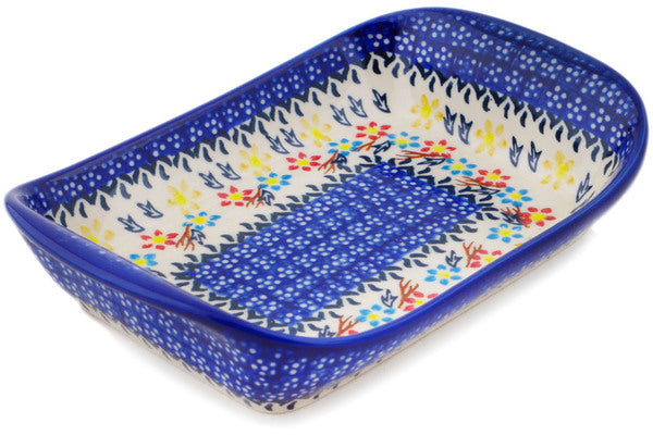 This Polish Pottery 9" Platter with Handles - Spring Flower Ring is handmade and handpainted by the Ceramika Bona factory in Boleslawiec, Poland.