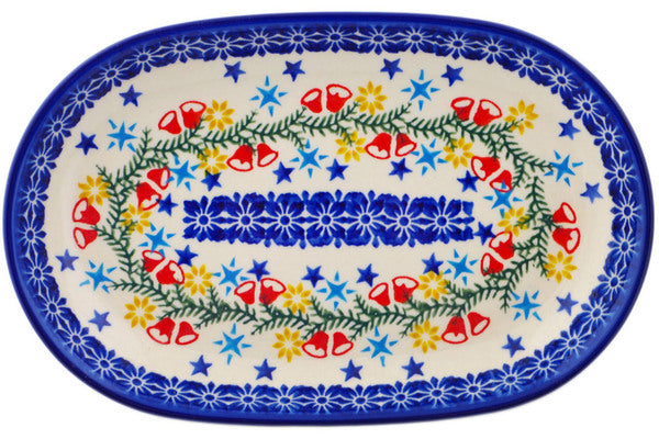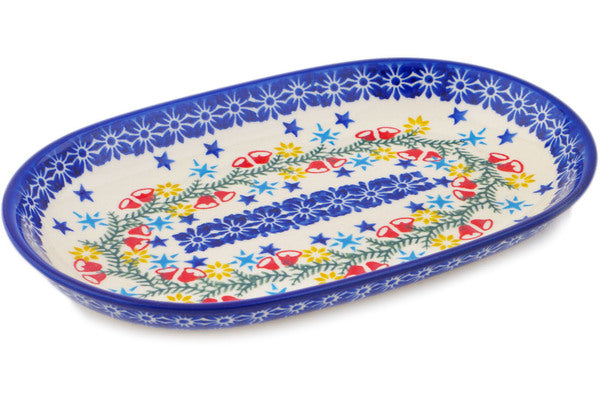 This Polish Pottery 9" Platter - Wreath Of Bells is handmade and handpainted by the Ceramika Bona factory in Boleslawiec, Poland.