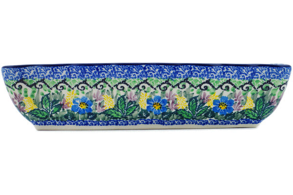 This Polish Pottery 9" Rectangular Baker - Summer Garden is handmade and handpainted by the Ceramika Artystyczna factory in Boleslawiec, Poland.