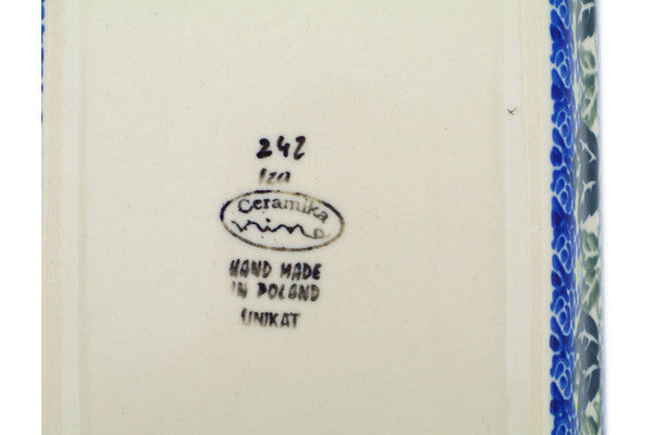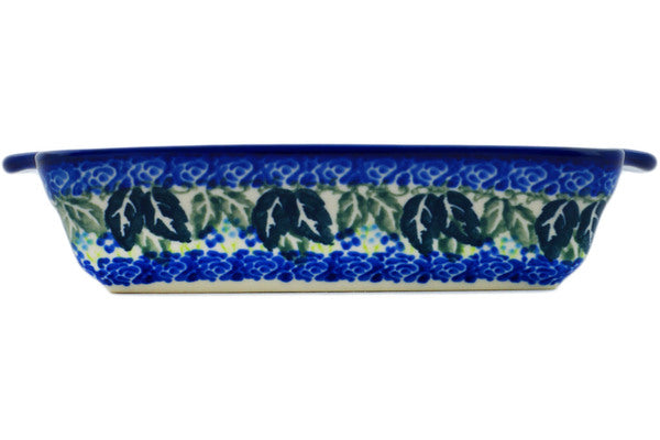 This Polish Pottery 9" Rectangular Baker with Handles - Floral Fantasy is handmade and handpainted by the Ceramika Nina factory in Boleslawiec, Poland.