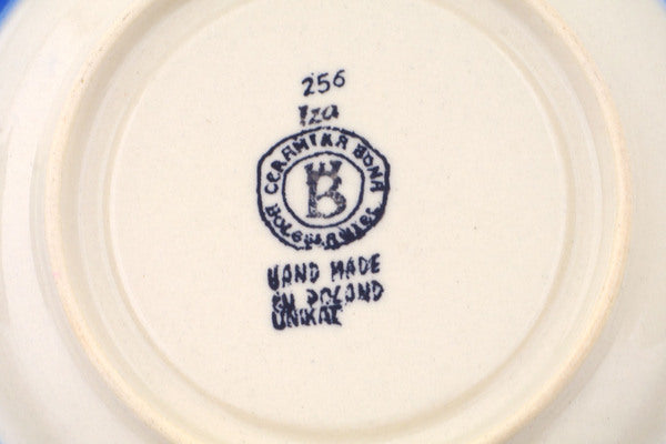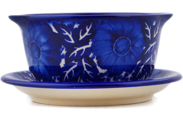 This Polish Pottery 15 oz Bouillon Cup with Saucer - Cobalt Fantasy is handmade and handpainted by the Ceramika Bona factory in Boleslawiec, Poland.