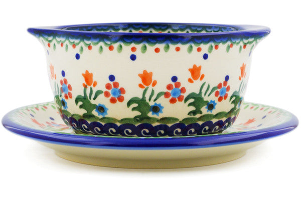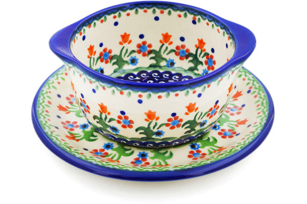 This Polish Pottery 11 oz Bouillon Cup with Saucer - Spring Flowers is handmade and handpainted by the Ceramika Bona factory in Boleslawiec, Poland.