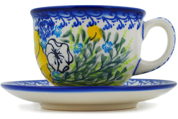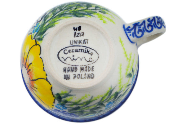 This Polish Pottery 7 oz Cup with Saucer - Bright Blooms is handmade and handpainted by the Ceramika Nina factory in Boleslawiec, Poland.