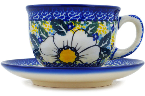 This Polish Pottery 7 oz Cup with Saucer - Floral Fantasy is handmade and handpainted by the Ceramika Nina factory in Boleslawiec, Poland.