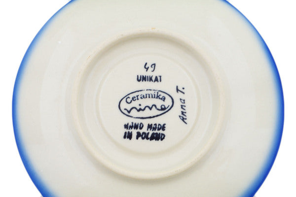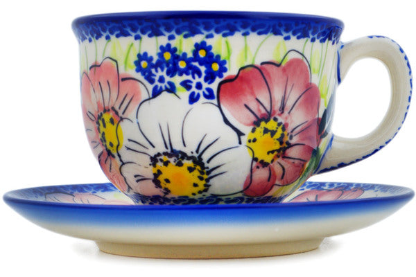 This Polish Pottery 7 oz Cup with Saucer - Maroon Blossoms is handmade and handpainted by the Ceramika Nina factory in Boleslawiec, Poland.