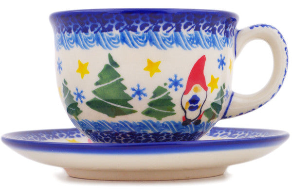 This Polish Pottery 7 oz Cup with Saucer - Twinkle Twinkle Little Gnome is handmade and handpainted by the Ceramika Nina factory in Boleslawiec, Poland.