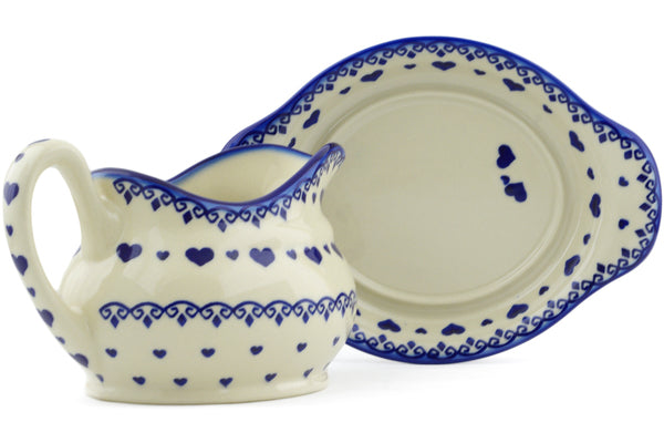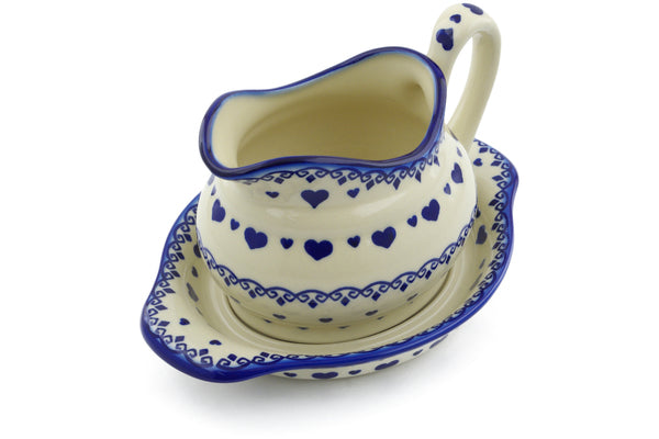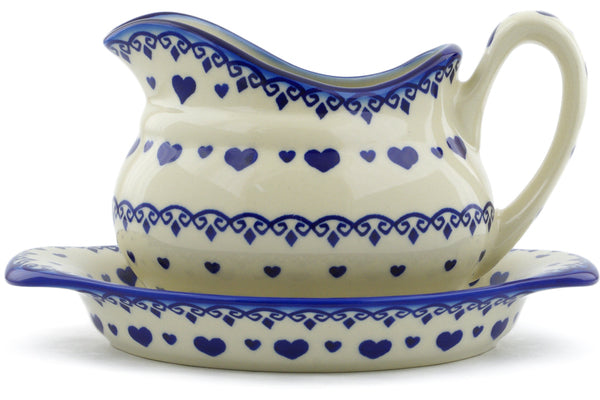 This Polish Pottery 19 oz Gravy Boat with Saucer - Blue Valentine Hearts is handmade and handpainted by the Ceramika Bona factory in Boleslawiec, Poland.