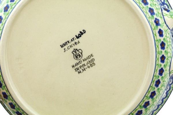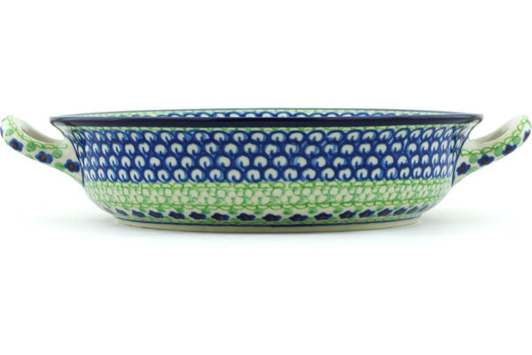 This Polish Pottery 10" Round Baker with Handles - Key Lime Dreams is handmade and handpainted by the Ceramika Artystyczna factory in Boleslawiec, Poland.