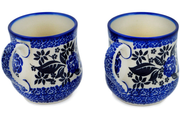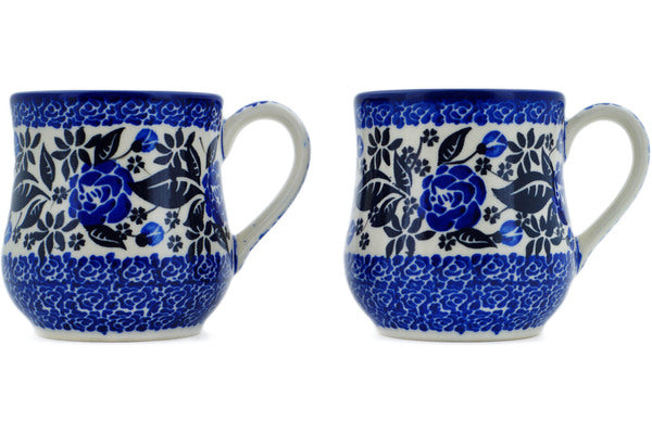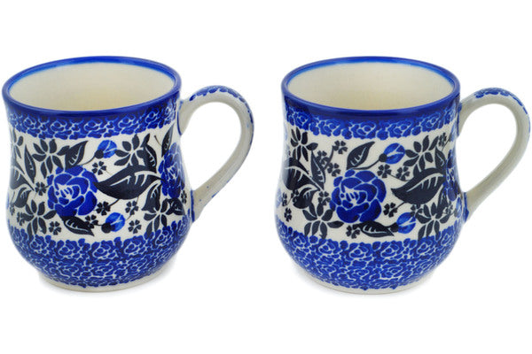 This Polish Pottery 13 oz Set of 2 Mugs - Midnights is handmade and handpainted by the Ceramika Bona factory in Boleslawiec, Poland.