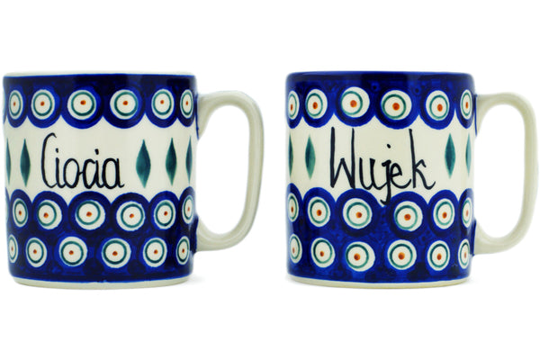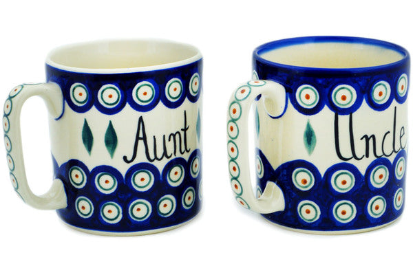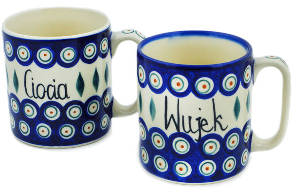 This Polish Pottery 24 oz Set of 2 Mugs - Variety is handmade and handpainted by the Ceramika Bona factory in Boleslawiec, Poland.