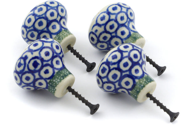This Polish Pottery 1" Set of 4 Drawer Pull Knobs - Water Tulip is handmade and handpainted by the Ceramika Artystyczna factory in Boleslawiec, Poland.